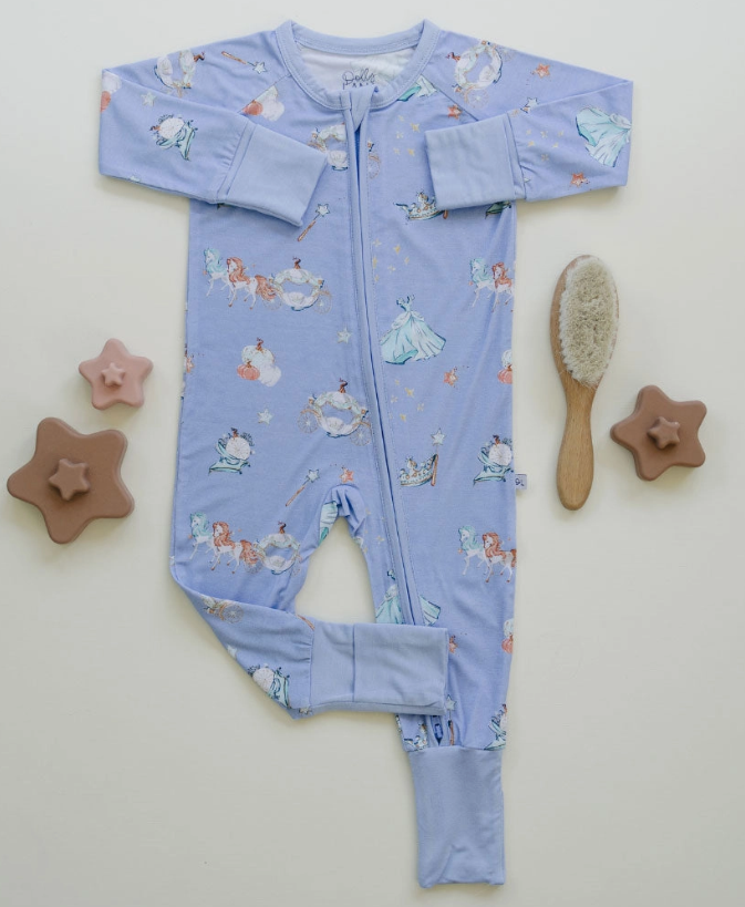 A dreamy bedtime essential inspired by a classic fairytale. This soft sleeper features delicate Cinderella-themed details - tiny carriages, glass slippers, and sweet storybook touches - for nights filled with magic and morning cuddles.